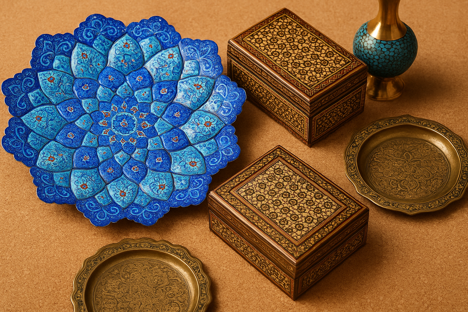 از صنایع دستی شاخص اصفهان میتوان به میناکاری، خاتم، قلمزنی، منبت، و فرش اصفهان اشاره کرد. رنگها و نقشهای بهکاررفته در این آثار تلفیقی از تاریخ، مذهب و طبیعتاند. در میناکاری، رنگ آبی آسمان بر فلز مینشیند و در قلمزنی، نقش گل و مرغ از دل مس و نقره بیرون میآید. هر اثر، داستانی از صبر و ایمان است.